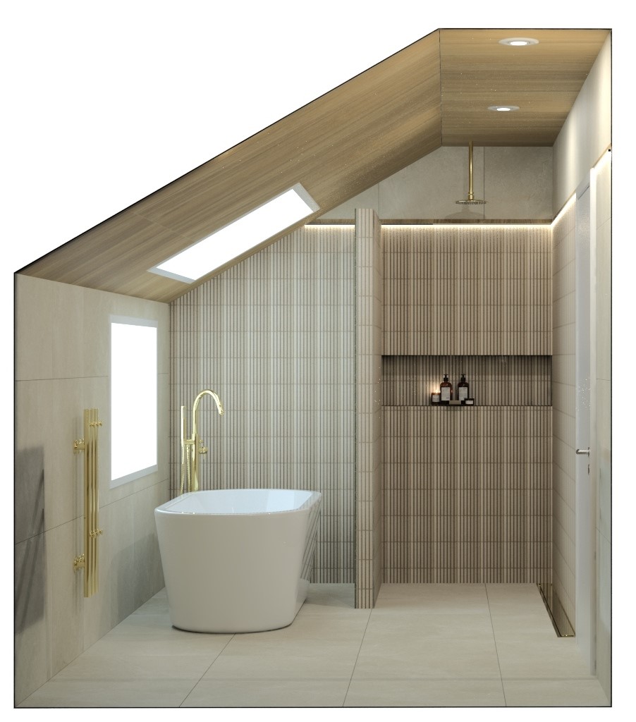 Stunning render created in Design Space by Chantal from Tile Space Dunedin. Featuring Magic Stone Sand with our Kayoborder Sand Matt.