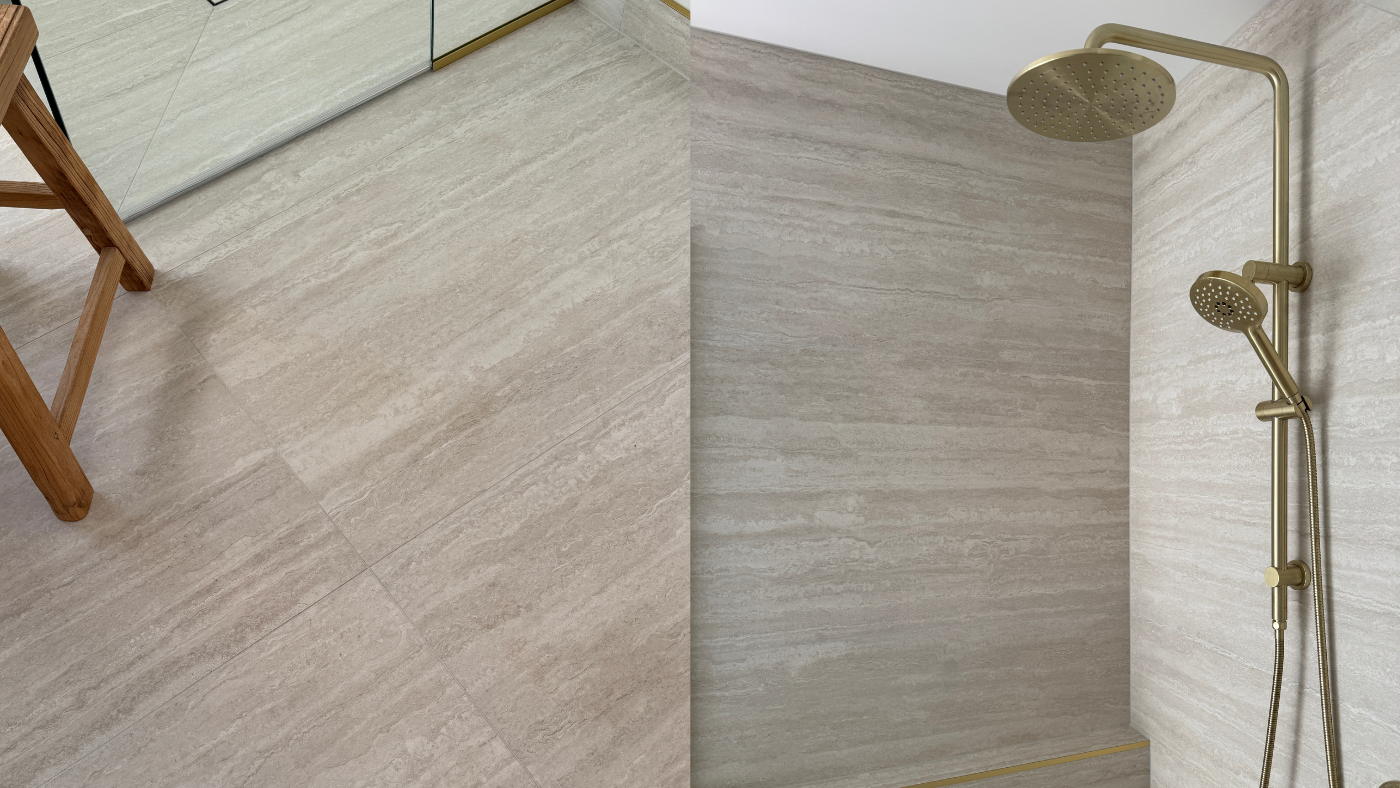 We used Tile Space tiles throughout all of our bathrooms, the laundry and our outdoor patio. I picked samples from what felt like every tile store in the country, and Tile Space consistently stood out for having the best range of bathroom tiles, marble-look tiles and natural stone-inspired finishes, all at an accessible price point.