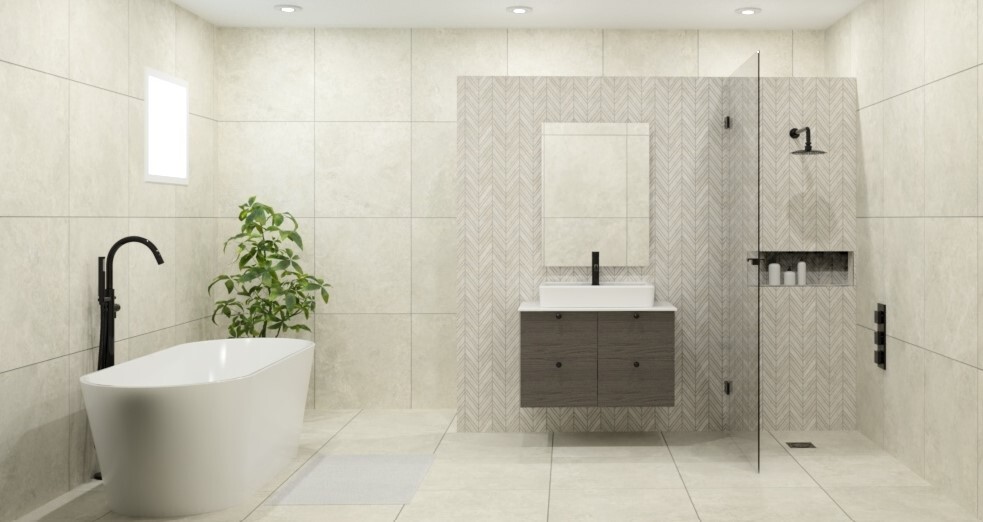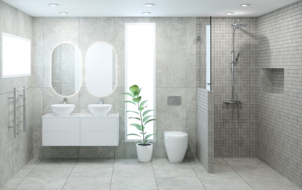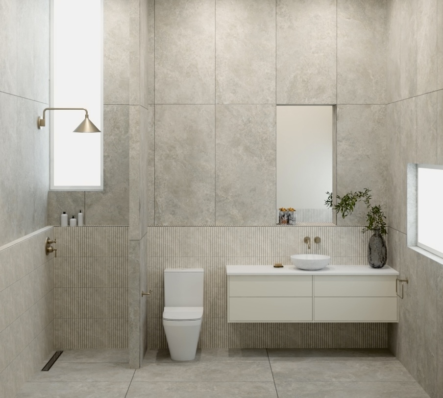 Lighting Matters: Soft, diffused lighting highlights texture without harsh gasket lines. Consider under-vanity or niche lighting to emphasise the tile finish.