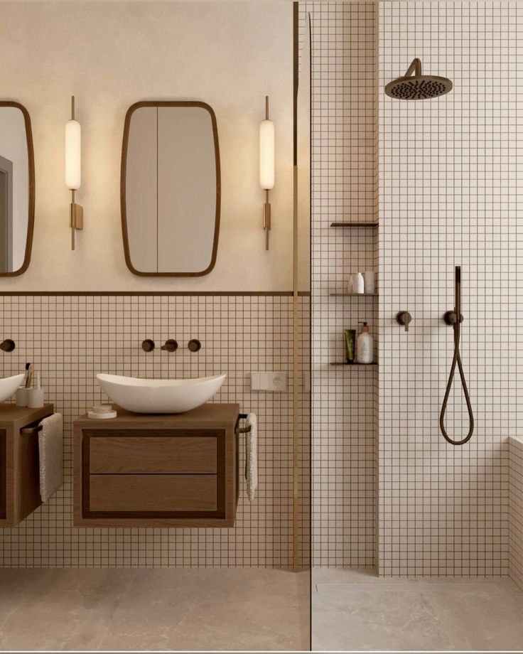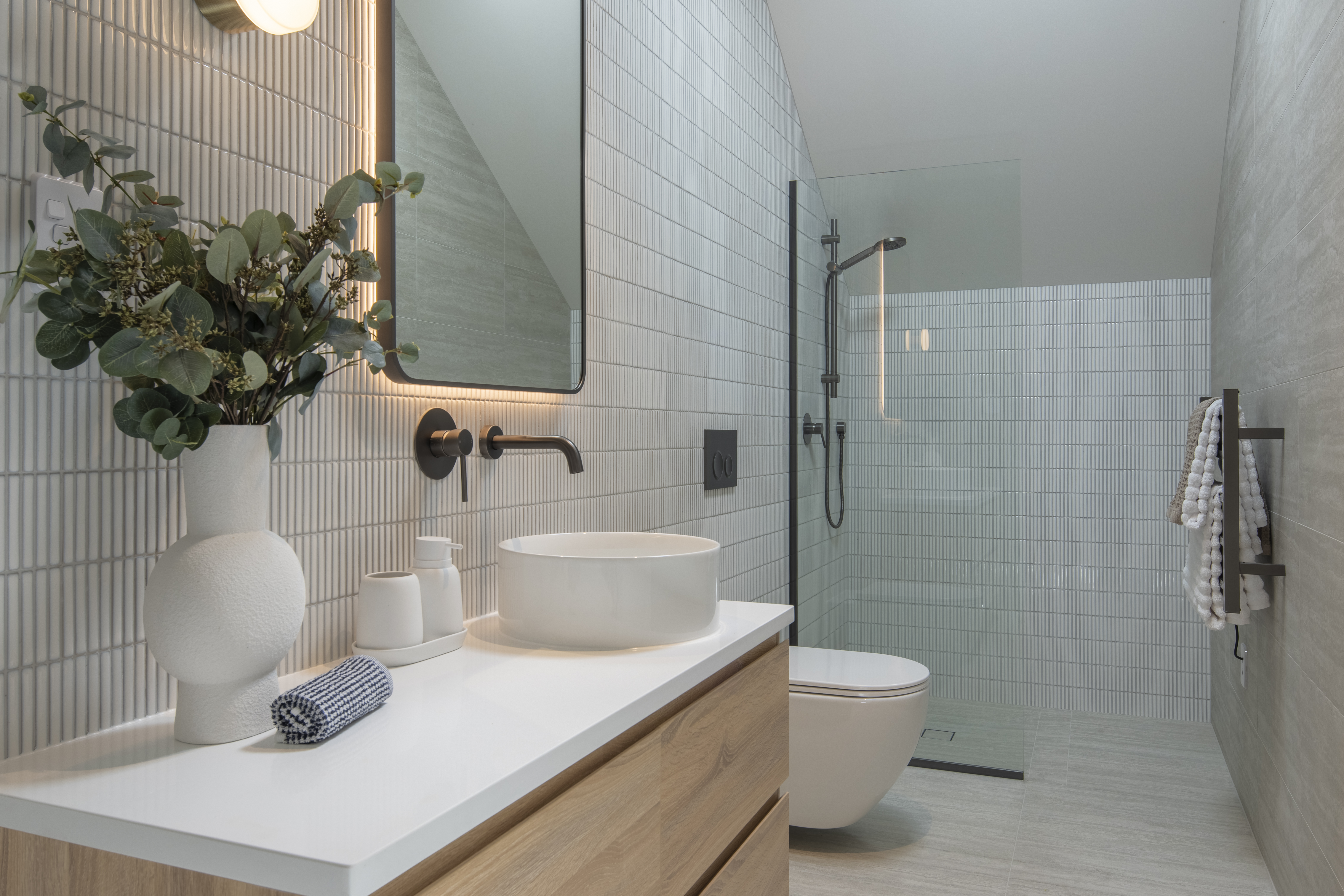 Pastel accents in smaller areas like splashbacks or shower niches for personality and playful contrast.