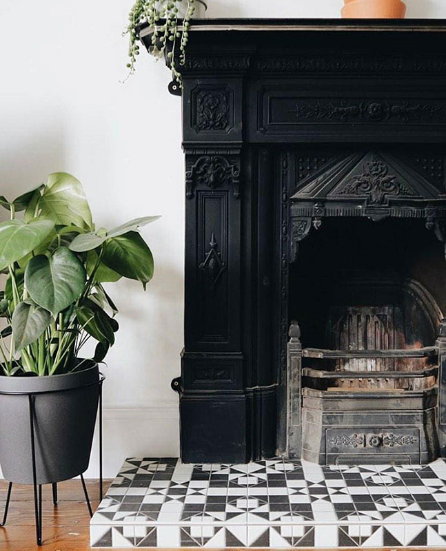 Our Harrow Grafito tile is a great way to create a traditional looking hearth. Photo credit - Cermicaetc