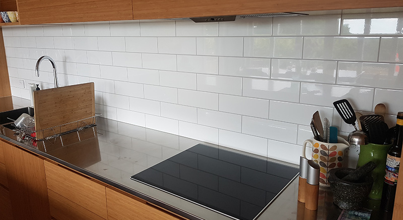 LED strip lighting at the back of splashback highlights any slight imperfections in the tile and the laying job.